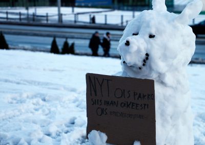 “We need action today,” says Olivia Ingman, 16, and adds that she came from Kauniainen, a wealthy neighborhood between Helsinki and Espoo. “My friends are arranging this protest, so I had to join. After all, this is a question of our future and environment!”