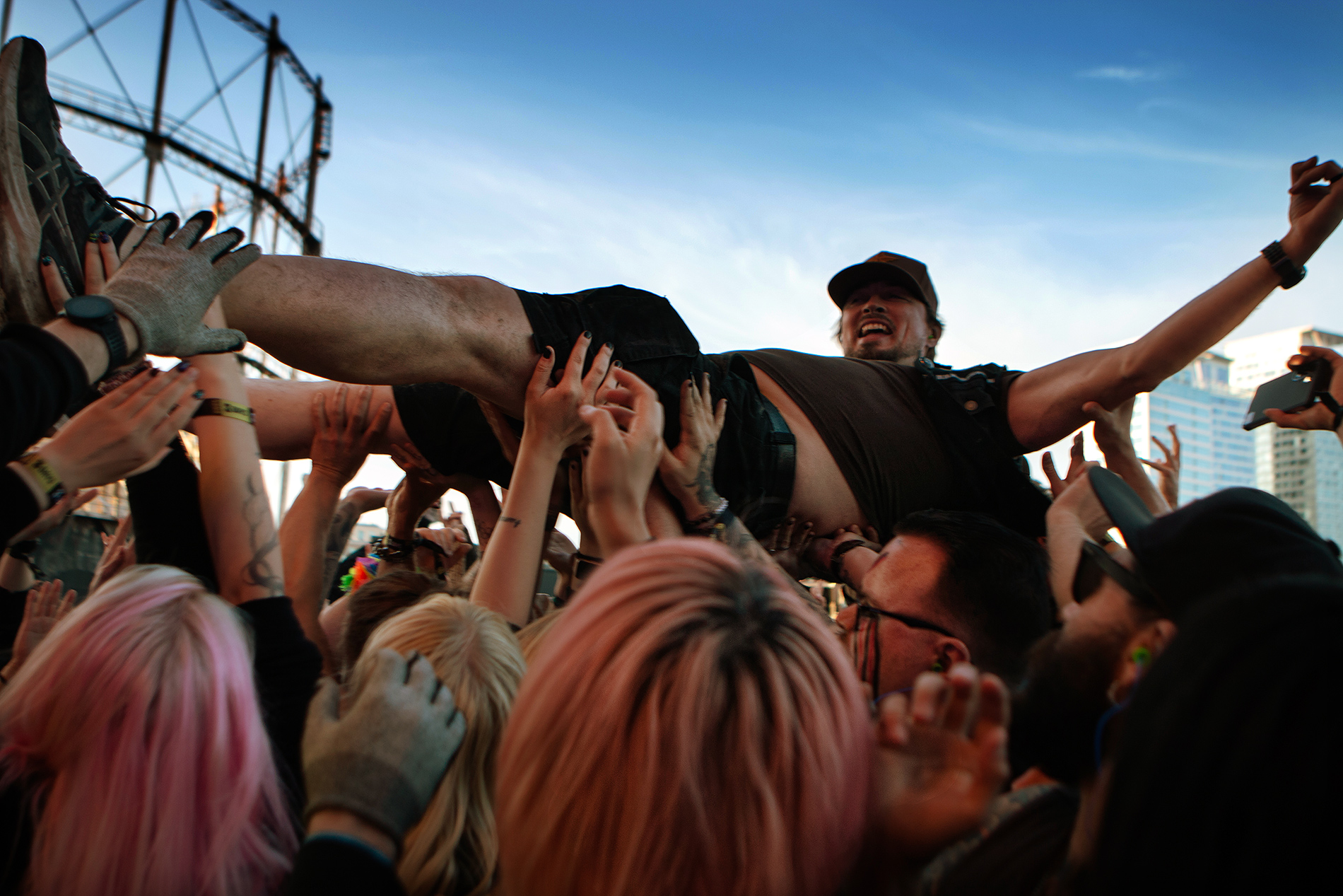 Crowd surfing may feel like flying. For some, it’s an experience of lightness, filled with enchantment and liberation. For this guy, it seemed like the next thing to do after slamming down shots. Photograph: TONY ÖHBERG/FINLAND TODAY