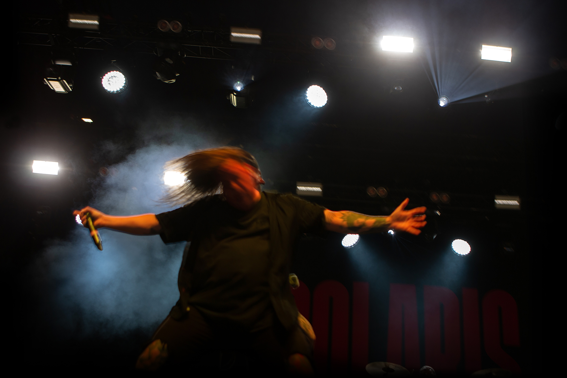Songs like the opener, “Bonebreaker,” shook the stage and the crowd. Vocalist Alex Terrible—known to me from media and protests, mostly negative for actions like waving the Russian flag (in these times, public affection for your home country is risky business)—rocked the stage like a tattooed, crownless Heavy Metal King!