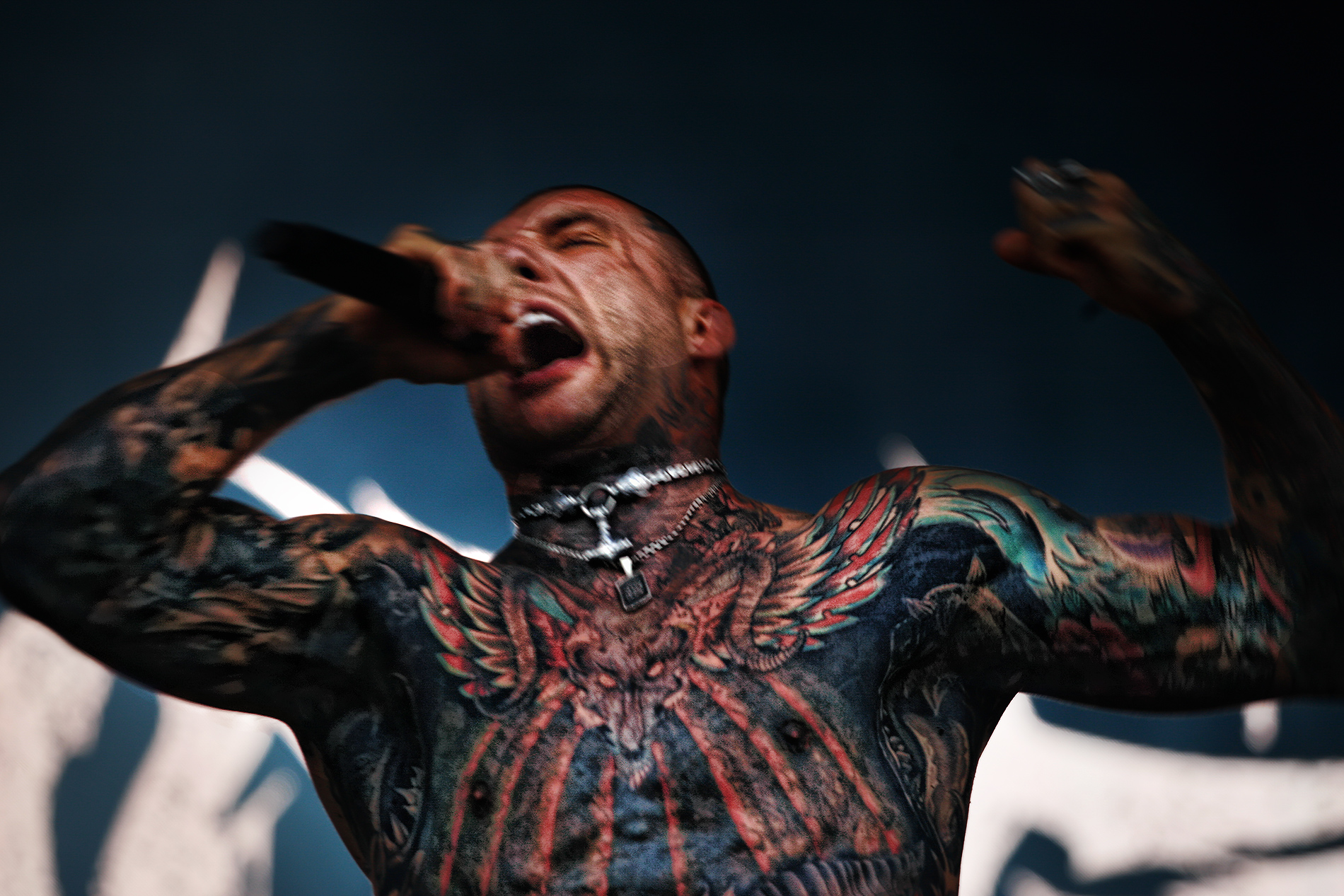 Alex Terrible of Slaughter to Prevail delivered a brutal vocal performance, which thrilled the crowd and left them wanting more. Photograph: TONY ÖHBERG/FINLAND TODAY