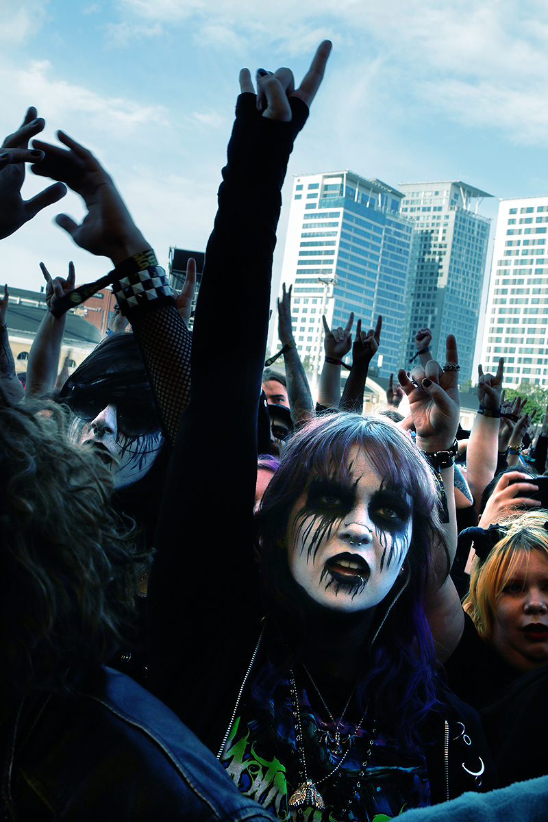 The hat’s gone. I kneel on the concrete, as if praying for salvation from the metal gods, to the thundering sounds of the innovative Japanese metalcore group JILUKA at Tuska on early Saturday evening. I see the light, or is it just the stage light? Bright, anyway … and then a hand emerges. I grab it. It’s strong; I rise like the Phoeni … or more accurately, like an old man recovering from a heat collapse with a bloody knee. As I lift my head, I see a smiling face. Boyish. Friendly. He hands over my hat. My camera hangs intact around my neck. My smartphone remains in my back pocket, despite rumored thieves roaming the pit. Screw them. There are 20,000 people here.